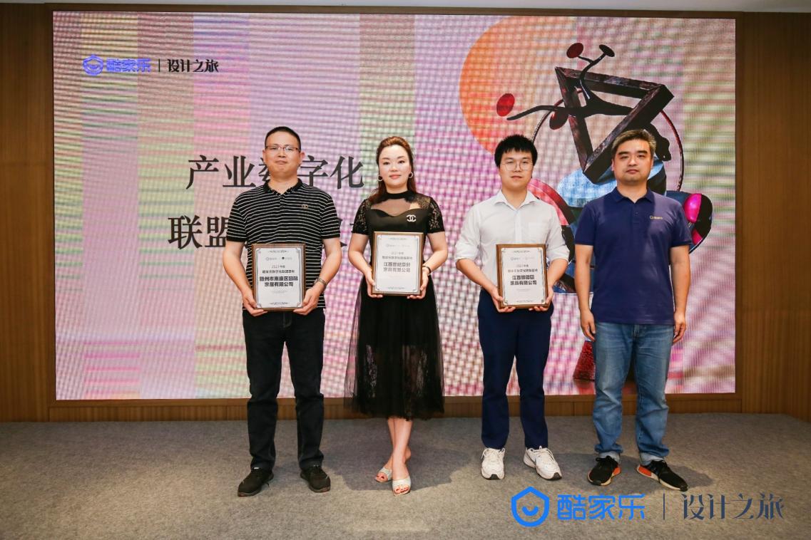 (上图为酷家乐为代表企业圆融家居、团团圆、世纪豪轩颁发产业数字化联盟牌)