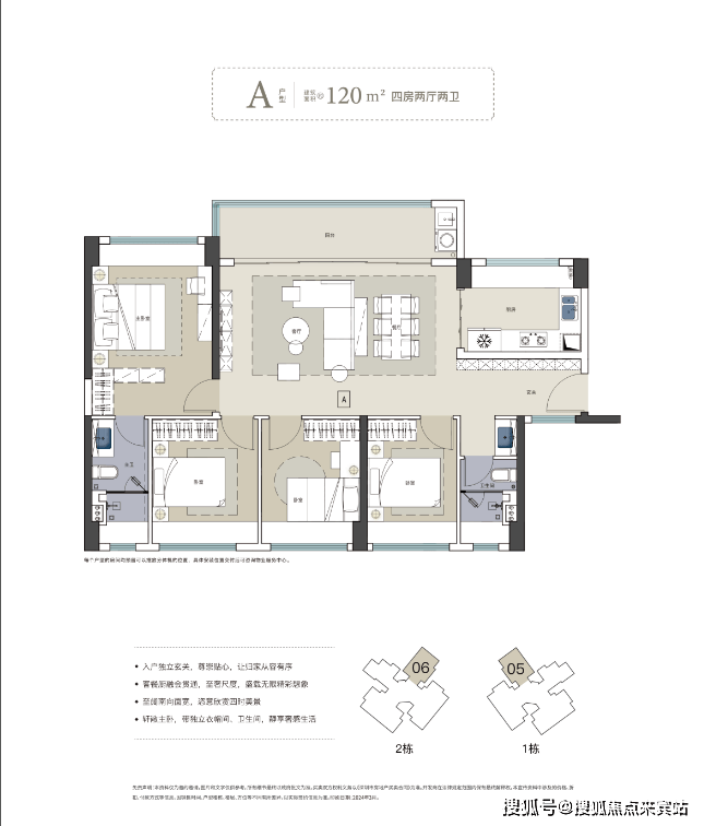 项目主推75-120㎡三至四房,使用率超80%,高赠送,三开间朝南,近享湖山生态景观,远看春笋城市地标。