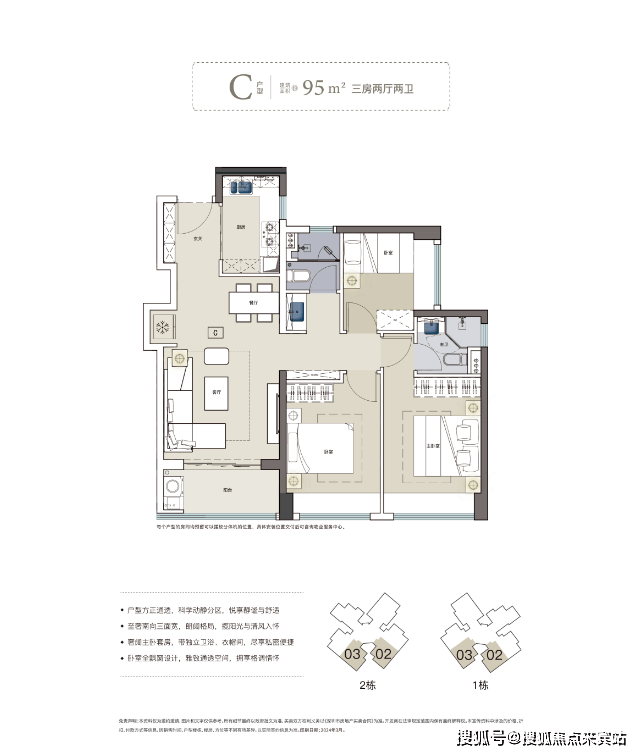75㎡ 3房1卫,124套,适合刚需上车;95㎡ 3房2卫,186套,主力户型,三口之家改善首选;120㎡ 4房2卫,62套,拥有6.7米超大阳台空间尺度,奢阔居住品质的代表大家族一步到位。