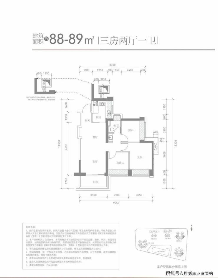 【产品户型】:建筑面积约85-88m²三房两卫、建筑面积约110-114m²四房两卫、建筑面积约113-119㎡四房两卫