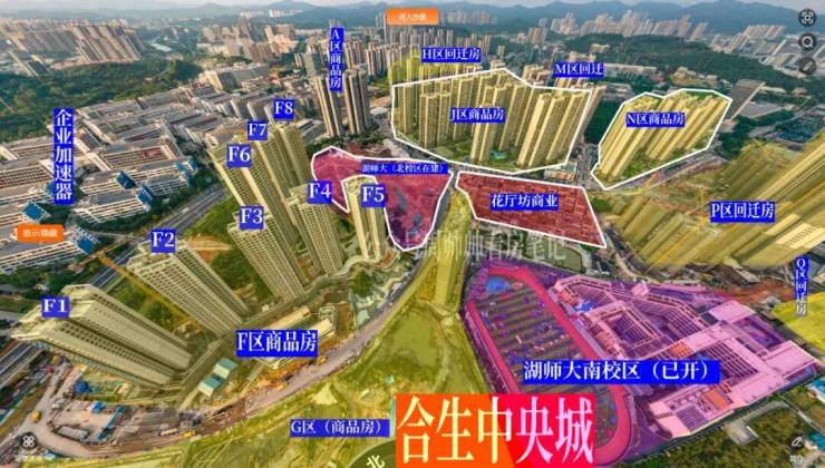 合生中央城位于广州市黄埔区科学城香雪板块,是火村旧改项目的产物,由融资区和复建区组成。该项目分6期开发,涵盖住宅、商业、学校以及仿古建筑及景区等多种业态,堪称“巨无霸”大城。
