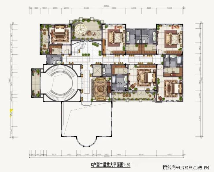 别墅二层可以设置5房4卫和超大活动室,客房还配有景观阳台;主人房套房内衣帽间、卫生间等功能面面俱到;配设开间约6.5米的空中露台,挥洒时光,静享人生。