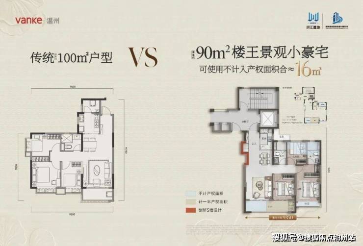 璞拾云洲以四代宅新规政策为标准,户型可实现近100%使用率,可使用面积比传统户型多约20%(注:13# 建筑面积约120㎡标准层户型为例),以建面约90㎡为例,拥有传统住宅105㎡的空间体验,相当于多出一间房的使用额度。