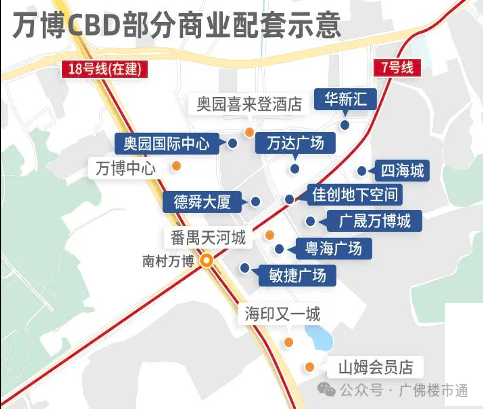②万博商圈:万博CBD已集结番禺万达广场、粤海天河城等10个商业体,以160万方体量超越天河路商圈!