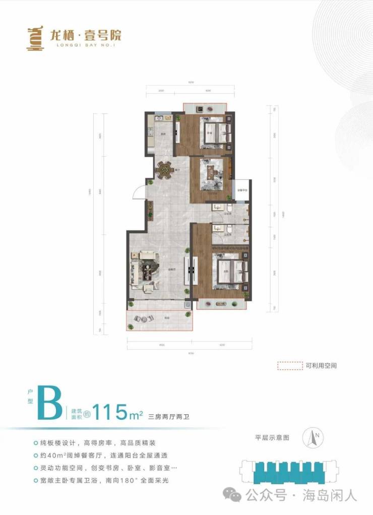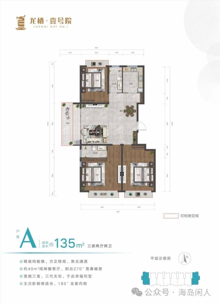 🏕在售户型:115㎡、135㎡,三房两厅两卫