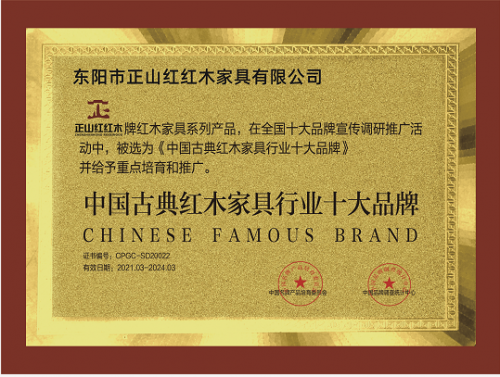 2021年5月,东阳市正山红红木家具有限公司(以下简称正山红红木)在北京举行的中国红木家具十大品牌评选中夺得“中国古典红木家具行业十大品牌”荣誉称号,再次彰显强大品牌影响力。此荣誉的获得,再次践明企业走品牌化、品质化路线的正确性。