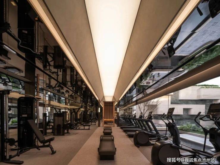 建面约1100㎡的下沉会所,堪称项目的“隐藏彩蛋”。其中令人惊艳的,莫过于板块内首个“无界泳池”——通过开放式结构,与下沉庭院水系连成一片,游泳时仿佛与自然景观融为一体,再加上旁边的健身房、瑜伽室,足不出户,就能实现每周的“都市微度假”。