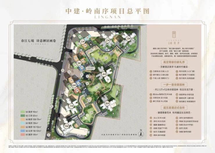 广州首鉴双全景舱作品建面约84-141㎡超四代宅超新规环幕奢宅 尺度升级 | 景观升级 | 舒适升级🌟【中建·岭南序基本信息】• 建筑面积:约15.5万㎡• 占地面积:约3.6万㎡• 容积率:4.3• 总户数:9栋住宅,1435户• 住宅层数:32F/46F• 梯户比:2梯4户/2梯5户• 车位比:约1:1.25• 首推楼栋:5/6栋,约84-141㎡四至六空间