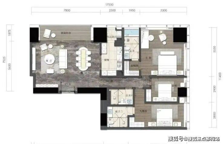 约223㎡3房2厅3卫(约7.8米阔绰横厅链接景观阳台)