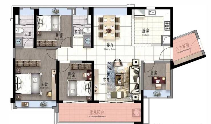 景观大阳台连通次卧--双套房设计,三代同堂更从容
