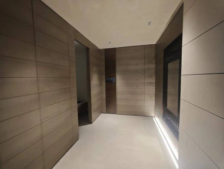 入户大堂,引入人脸识别系统,内部宽敞明亮,搭配高质感岩板、金属格栅和氛围灯,仪式感拉满。