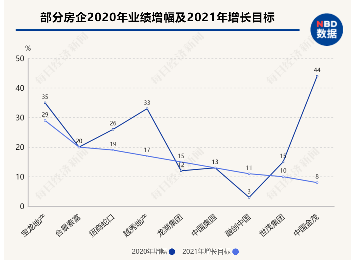 值得一提的是,在业绩会上,不少房企提出的2021年业绩目标增长预期远低于2020年的增幅,一定程度上意味着房企对今年市场发展的谨慎态度。