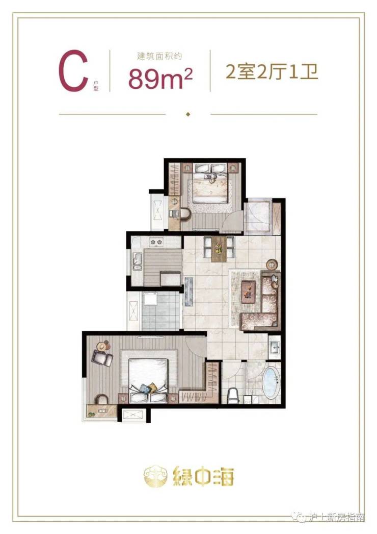 建面约87-89㎡2房2厅1卫