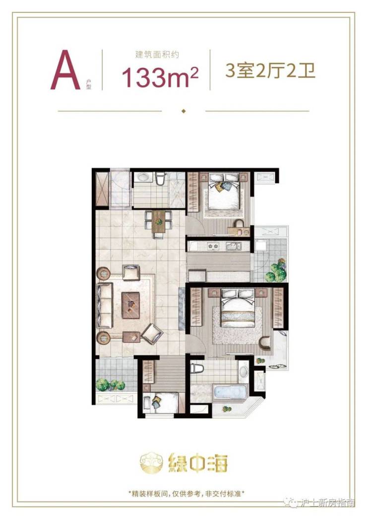 建面约133㎡3房2厅2卫