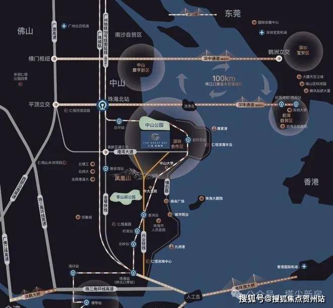 黄金内湾交通枢纽:湾区西岸枢纽,地处「珠江口100km黄金交通大循环」核心节点