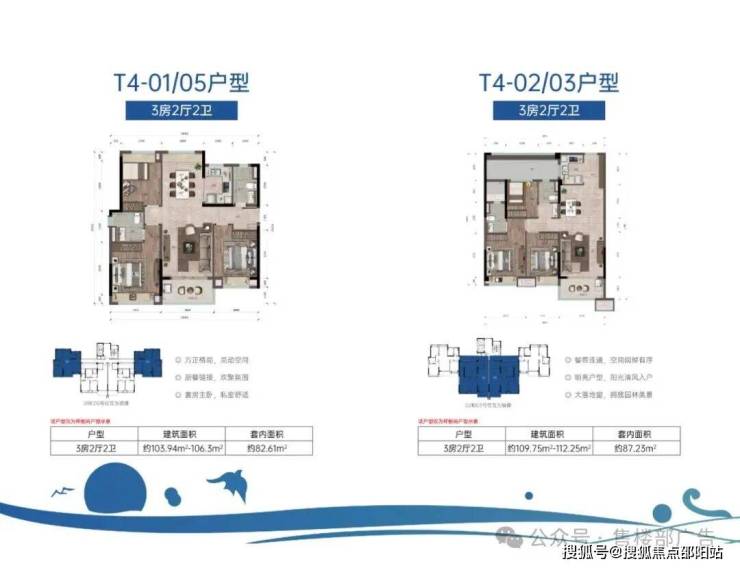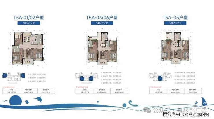 ·①T5A户型 108㎡ 三房两厅两卫:0102号位(边户)和03/05/06号位(中间号位)的展示,每个户型都有它的故事。
