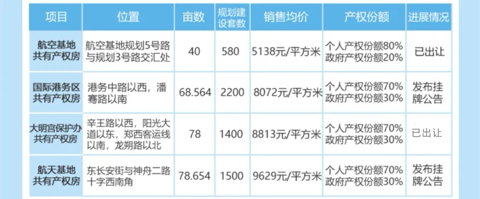 据西安住建局的信息,截止7月底,西安全市已落实共有产权房建设用地1115亩,各区和开发区均有布局,正在陆续推出之中。其中,航空基地40亩、大明宫保护办78亩,两宗累计118亩已确定了建设单位,490亩确定了销售价格。部分地块信息如下: