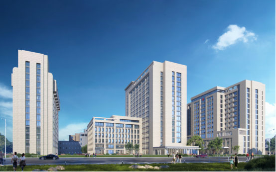 规划将住院综合楼置于外科楼与疫情救治中心之间,注重提供更大的公共空间,提升患者就医便捷程度,让医护人员在优质的空间环境下开展工作。