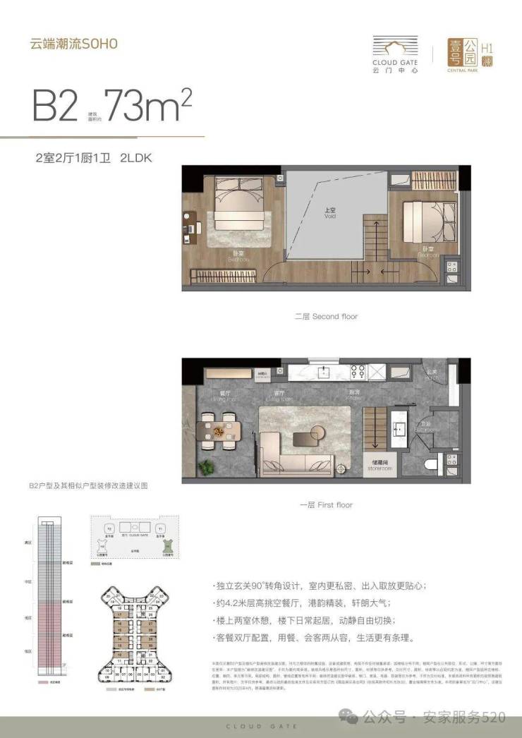 垂直静区双卧:楼上主卧拥云海日出,次卧隐秘无忧,全分离动线互不干扰。