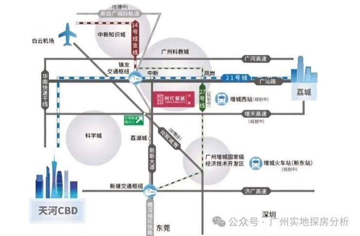 距离地铁21号线中新站约1.7公里,可通过如约巴士或公交快速接驳。增天高速(预计2025年通车)建成后,到天河核心区仅需20分钟左右,花莞高速已通车,可快速直达知识城、科学城等区域,通勤效率较高。