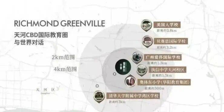 中学:执信中学天河校区、清华大学附属中学湾区学校、华师附外美式高中、广州奥林匹克中学、华南师范大学附属外国语学校
