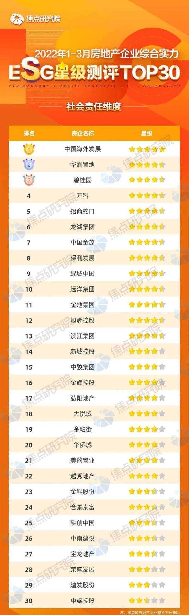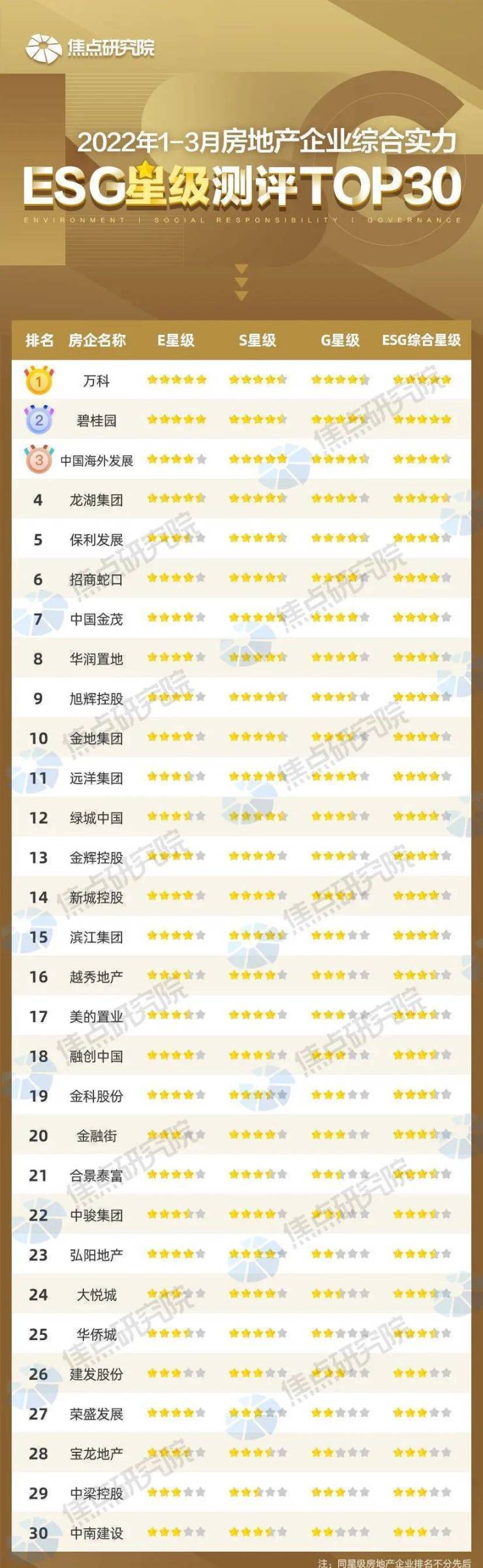 2022年一季度房企ESG星级测评TOP30