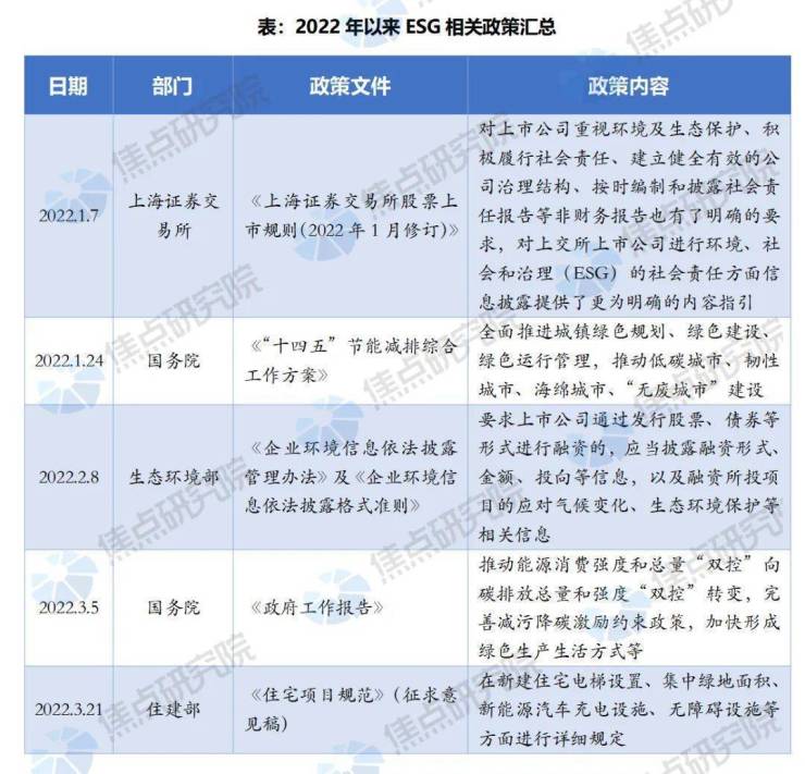 2020年9月,作为负责任的大国,我国在联合国大会上向世界宣布了“2030年前实现碳达峰、2060年前实现碳中和”的目标。随后,双碳目标正式成为ESG和绿色金融各项工作的引领和抓手。2022年以来,ESG发展进入良性轨道,内外两方面均有助力。房地产企业在行业“房住不炒”的主基调下,积极探索新模式和阶段,建立全链条的良性循环,寻求企业的健康发展。房企对ESG管理体系开始从内部真正重视起来,在各个方面均有积极地投入及进展。同时,从行业外部环境上看,住建部积极推动城市绿色低碳建设,优化城市结构和布局,大力发展绿色建筑,加快推进既有建筑节能改造,因地制宜推进建筑可再生能源应用。