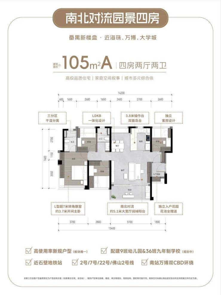 4地铁:Line2/Line7/Line22/广佛Line2,4站到万博、海珠,6站到珠江新城。下楼公交接驳地铁,5min家与地铁的距离;