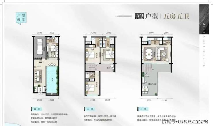 建筑面积80㎡,赠送率高达225%—400%,实际使用面积270㎡—320㎡,5房5卫别墅,也可改6房。