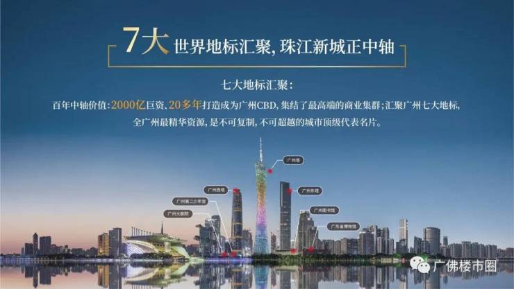 珠江新城20多年打造成为广州CBD,总部企业占广州3成,世界500强投资项目占广州市超5成,是世界城市集群核动力。同时,这里集结了最高端的商业集群;汇聚广州七大地标,是不可复制,不可超越的城市顶级代表名片。