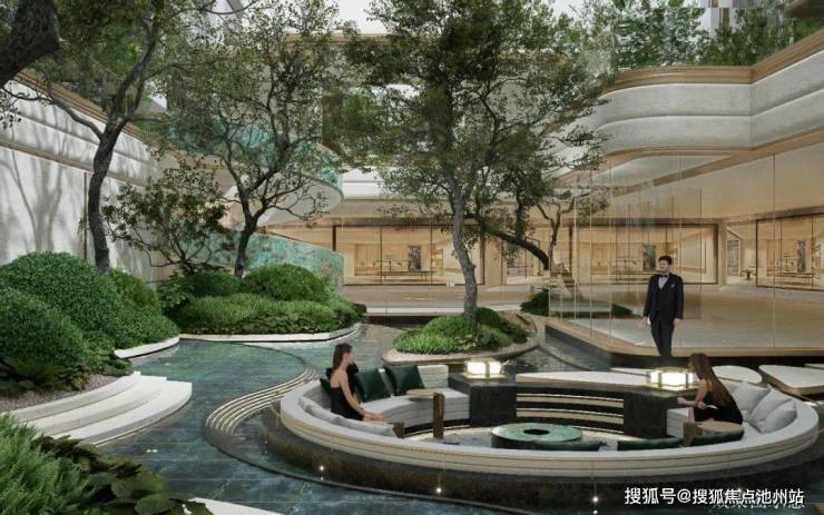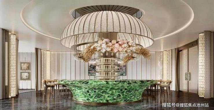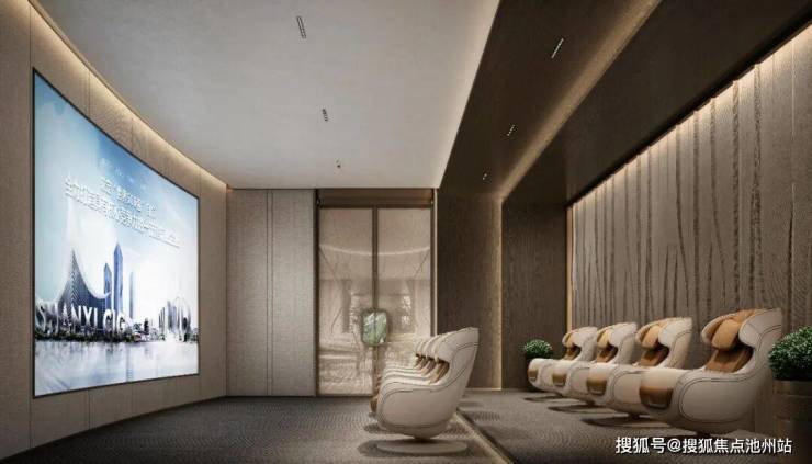 架空层业主会所内,设置了健身区、书吧、水吧、私宴厅、影音室、瑜伽区、儿童游乐区、小型高尔夫练习场、台球活动室、泳池等活动空间。