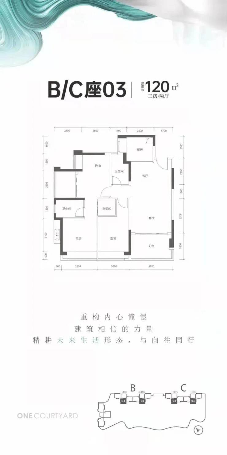住宅梯户:A座3梯3户;B/C座2梯3户