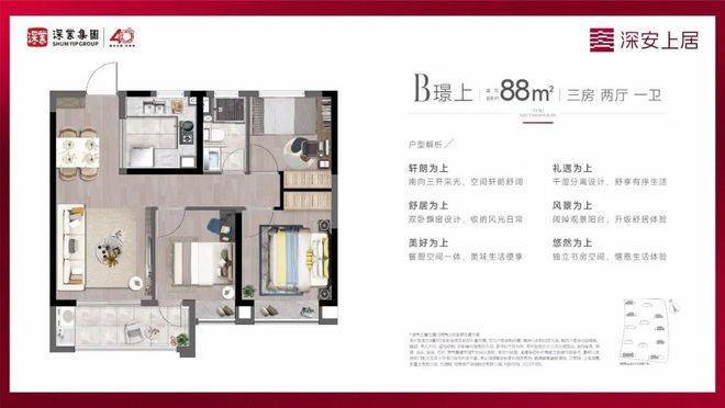 深业·深安上居 国企匠作 300万级 元气青年住区 11号线昌吉东路站200米(直线距离,数据来源高德地图) 建面约88-98㎡ 臻装三房