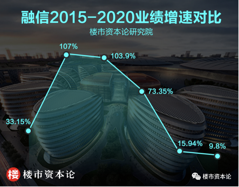 楼市资本论注意到,2020年融信共计签约销售金额1551.7亿元,同比增长9.8%。虽然勉强完成了年度目标,但增速却达上市以来较低。融信2015-2019年销售同比增幅分别为33.15%、107%、103.9%、73.35%和15.94%。相比曾经较高达3位数的增长率,如今的一位数增长,的确让人着急。相信这在资本市场上已经有所体现,千亿规模的融信,较新市值仅90亿。