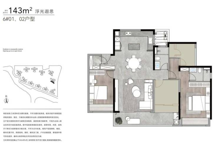 项目一共有3个地块,目前在售的组团占地面积最大,呈现围合式布局,中央园林比较大,东西楼间距非常宽