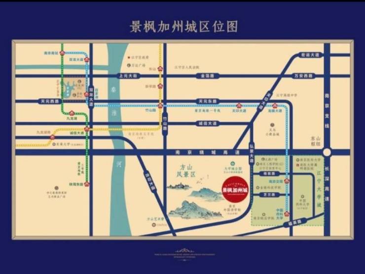 项目位于江宁大学城,方山风景区脚下,由景枫集团开发建设纯别墅型社区。项目共分为四期:一期、二期为加州城,三期法兰谷,四期你山。项目南侧紧邻南外方山分校,西侧紧邻方山,北侧依靠高尔夫球场及大学城公园,环境优美、视野开阔。