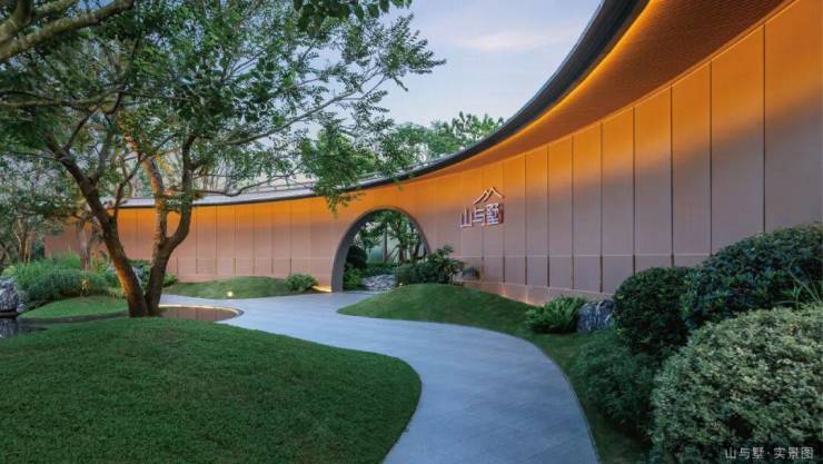 山与墅建筑立面采用三段式构图,以双重批檐、大挑板、格栅等为脉络,甄选钢化玻璃面、铝板等材料,臻筑大雅院境,演绎新中式院墅融合古今的美学气韵。