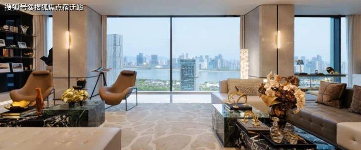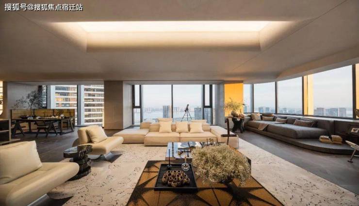 优雅步行入内,约180㎡的超级云端会客厅,窗外是270°的奥体江山图,一览无余的江河汇,这样尺度带来的辽阔观景感,是很多产品无与伦比的,一点点澎湃感在观众体内陆续迸发。