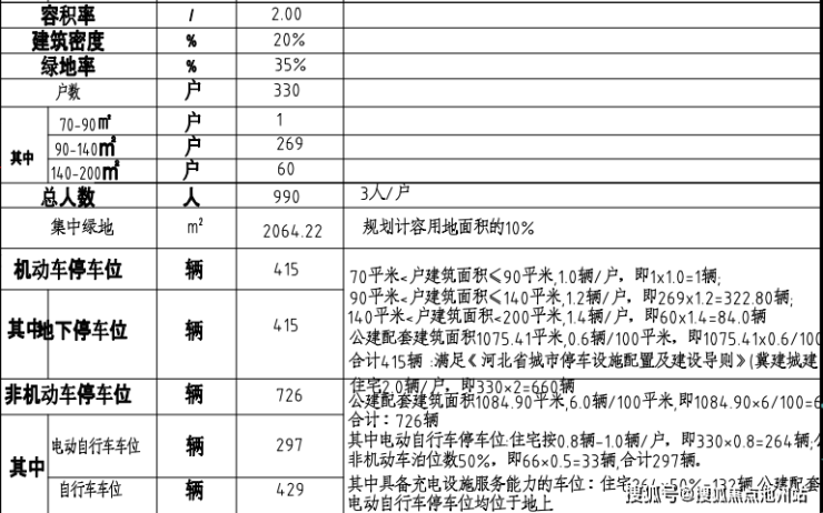项目总建筑面积60728.26平方米,阳台面积按半面积计算,容积率2.0,规划户数330户,机动车停车位415辆。