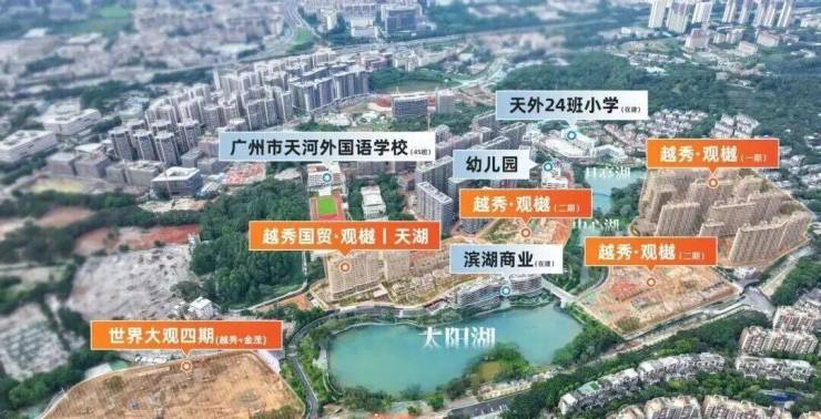 越秀观樾项目择址广州市天河区的世界大观板块,整个观樾项目将由越秀集团分为四期连片开发