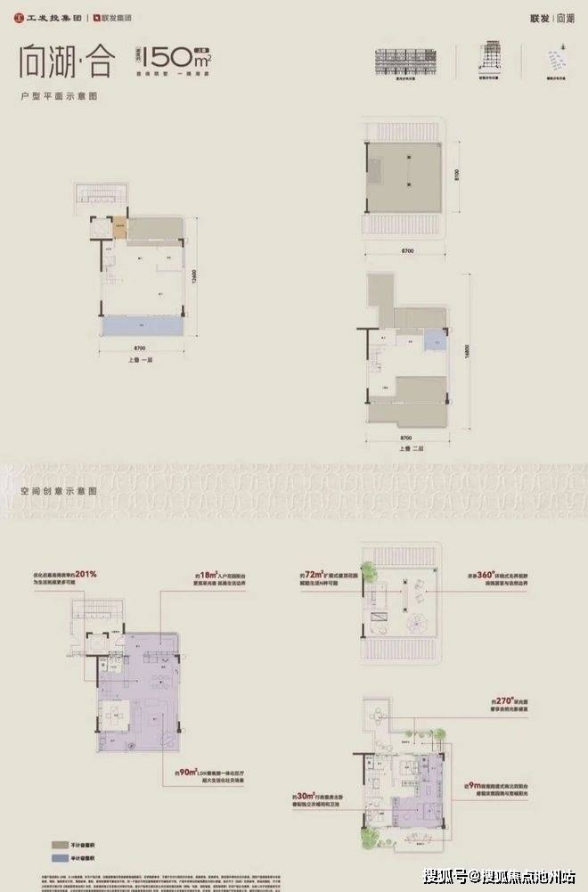 叠墅产品更显震撼:建面约160㎡中叠得房率 141%,建面约 150㎡上叠得房率 201%,建面约 178㎡下叠以 245% 得房率实现 “买一得二” 的空间福利。