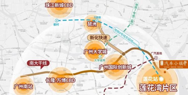 项目周边是没有地铁的,不过附近规划了地铁8号线东延段,线路开通后从莲花湾去万胜围预计25分钟左右,自驾的话,比较方便点,小区旁边就是南大干线,去往国际创新城、万博、广州南站、琶洲都非常方便。