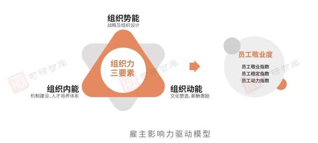 研究体系方面,可研智库以员工敬业度作为组织健康程度的衡量工具,将组织势能、组织动能和组织内能的二级指标,即:战略&组织设计、机制建设、人才培养、薪酬激励和文化塑造等五项要素作为提升组织健康程度的研究路径。