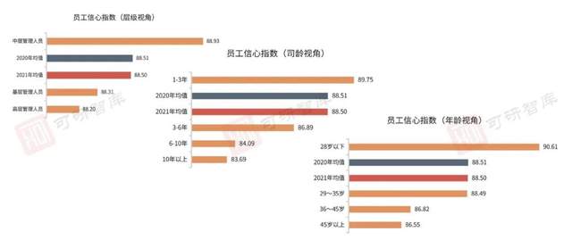 数据分析方面,本年度可研智库更聚焦于微观视角分析,打破往年仅对企业层面进行数据分析的研究思路,深入员工层面,针对每个三级指数提供年龄视角、司龄视角与层级视角的不同数据反映,并通过前后2年的均值数据对比进行趋势研究。