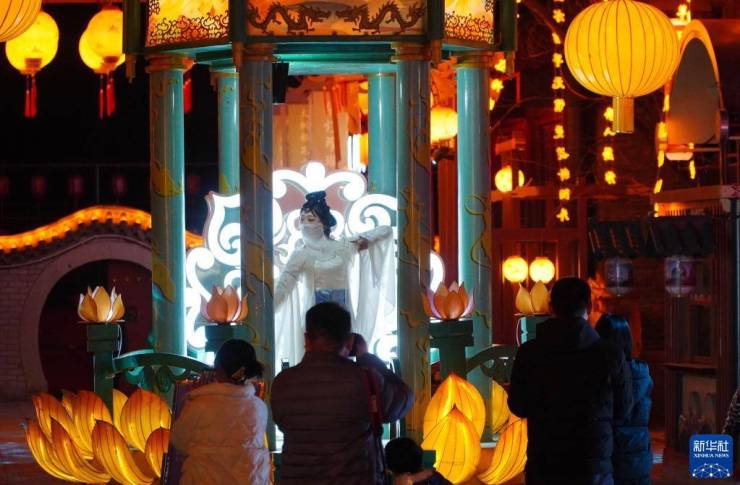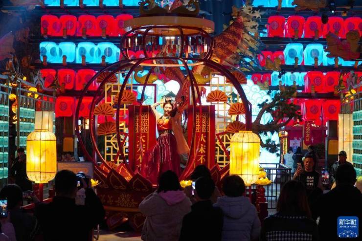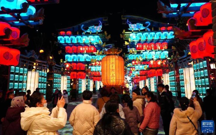 2月27日晚,游客在位于山东省东平县的大宋不夜城游览。大宋不夜城是山东省东平县集古镇风情与宋文化街区于一体的全新旅游项目。大宋不夜城从今年1月7日正式向游客开放以来,已吸引游客超过110万人次,对繁荣夜经济、拉动消费起到有效促进作用。新华社记者徐速绘摄