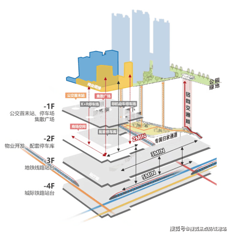 项目整体采用站城融合的规划逻辑,在有限用地内通过立体化设计实现多功能叠加。住宅、商业、公共空间通过垂直布局与动线分离,兼顾效率与居住私密性。