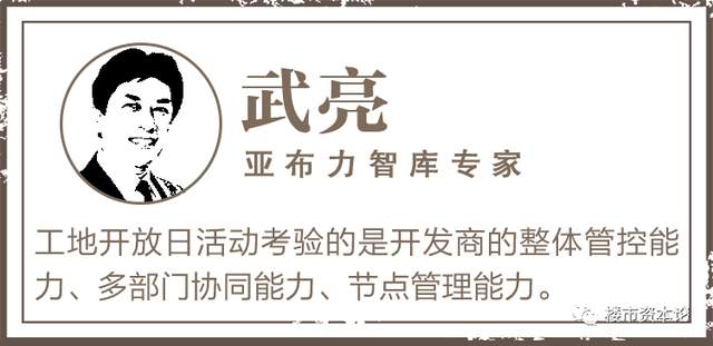 对此,亚布力智库专家武亮指出,在当今市场来看,工地开放日活动并不普遍,因为这对开发商来说可谓是一场大考,考验的是开发商的整体管控能力、多部门协同能力、节点管理能力。