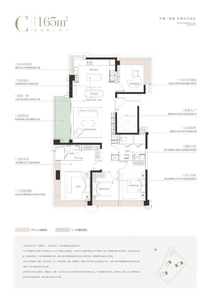 景观方面 ,「外滩瑞府」通过建筑楼体的偏转,形成了围合式的景观布局。由此,项目做出了 约3000㎡尺度宏大,连续贯穿的核心中央花园 ,并利用楼栋布局与边界形成夹角,自然衍生出6个小型花园组团。