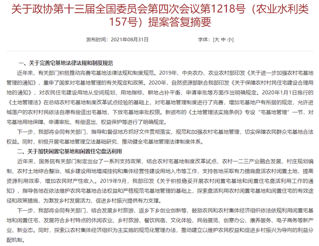 据农业农村部网站8月31日消息,农业农村部在《关于政协第十三届全国委员会第四次会议第1218号(农业水利类157号)提案答复摘要》中表示,农业农村部将会同有关部门,结合发展乡村旅游、返乡下乡创业创新等,鼓励农民和农村集体经济组织依法依规利用闲置宅基地和闲置住宅,发展符合乡村特点的休闲农业、乡村旅游、餐饮民宿、文化体验、民俗展览、创意办公、康养服务、电子商务等新产业、新业态。