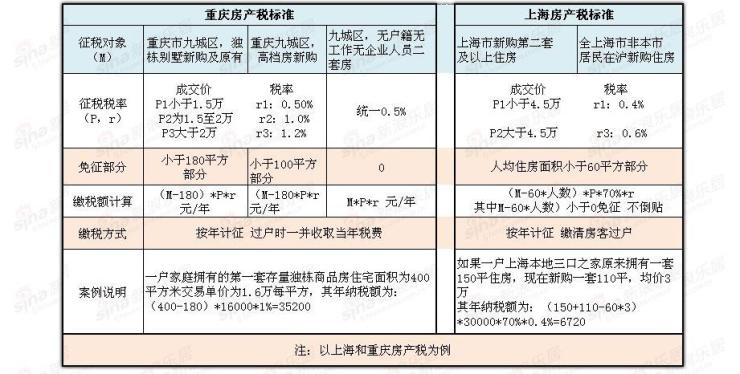 早在2011年,上海和重庆先行开启了房地产税的试点。两座试点城市的侧重点有所不同,上海主要以多套房为主要征收对象,首套刚需及人均面积在60平米以下,均不在纳税范围内;重庆则是以高端豪宅为重点征收对象。